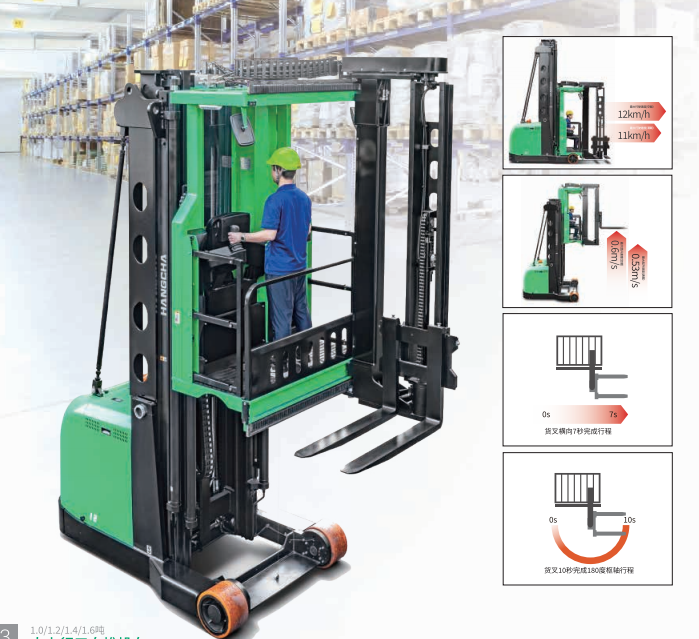具有高起升、高承载能力、转弯半径小、性能先进、操作舒适、安全可靠等特点,是高位立体仓库物流搬运、堆垛和拣选的理想车辆。